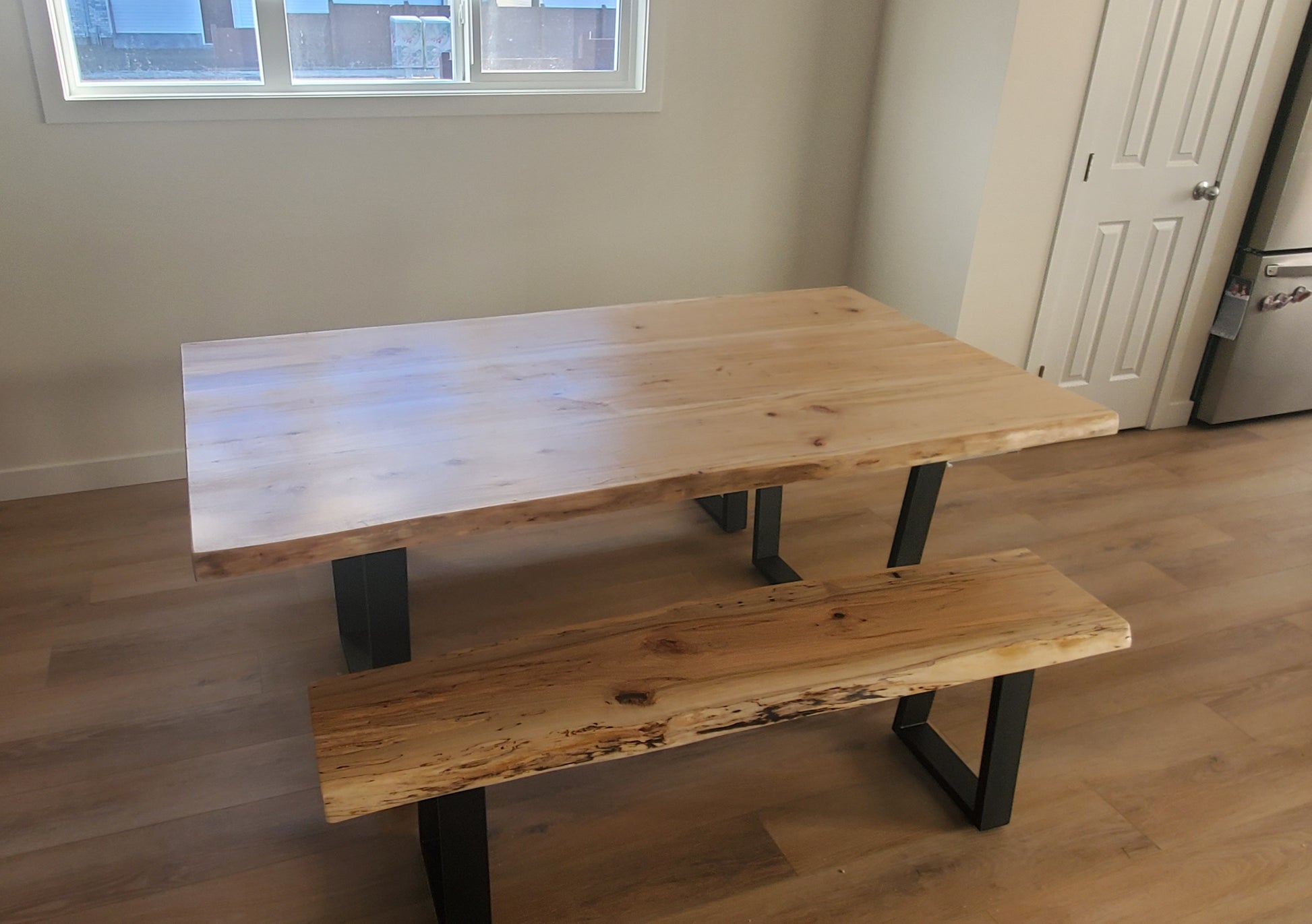 Bring natural beauty and modern craftsmanship to your dining space with this handcrafted live edge maple dining table. Made from solid Canadian maple, each table features a one-of-a-kind live edge and striking grain patterns that highlight the warmth and character of the wood.